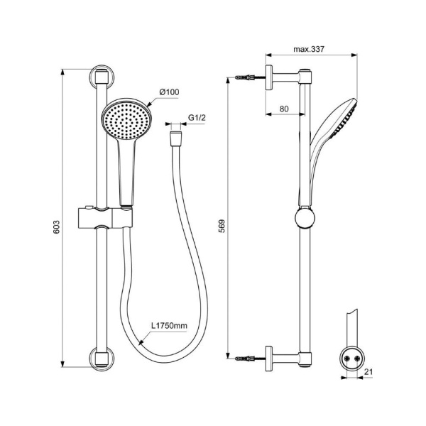 Душевой гарнитур Ideal Standard Idealrain BD142XG черный матовый Душевой гарнитур Ideal Standard Idealrain BD142XG черный матовый