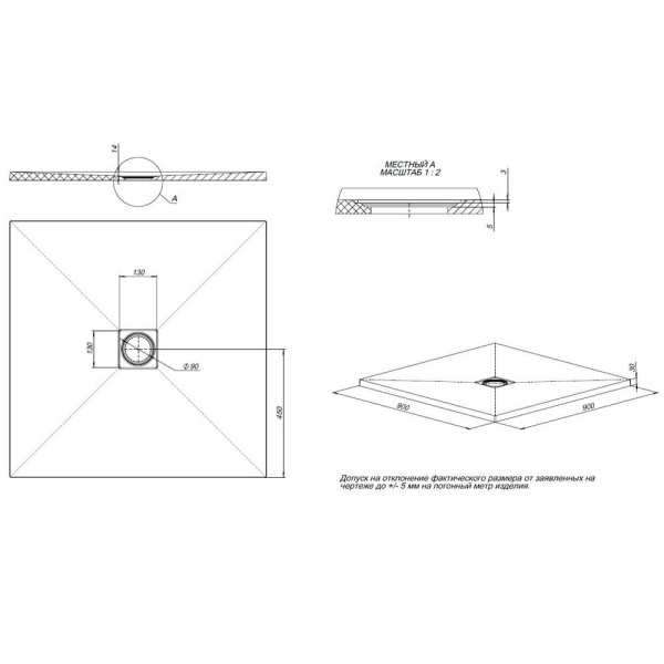 Стандартная форма, что понятно по размерам, – квадрат. Часто также выпускаются круглые поддоны. Отсутствие нетипичных выпуклостей позволяет избежать проблем с поиском стеклянной перегородки.