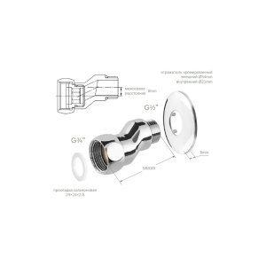 Футорка 1/2*3/4 хром RR 511