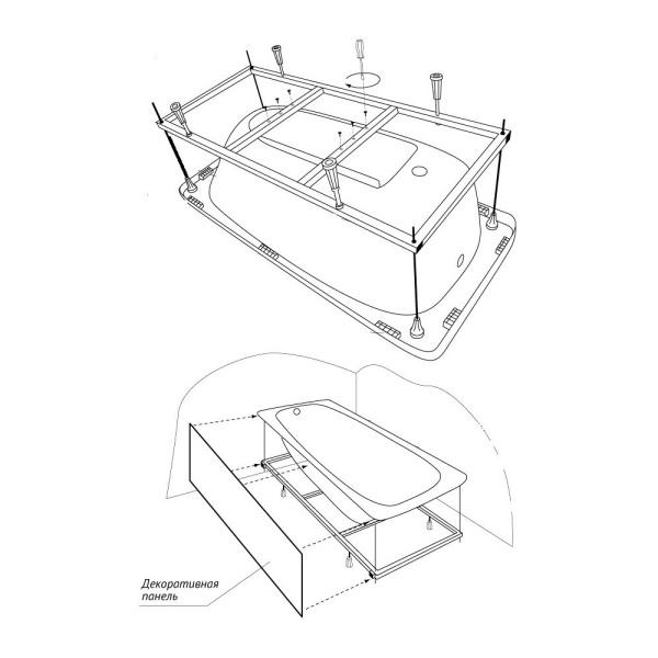 - Убедитесь, что каркас подходит именно для вашей модели ванны. Важно, чтобы его размеры и форма соответствовали ванной, особенно если она имеет нестандартные габариты.