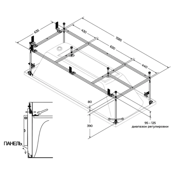 - Устойчивость и безопасность: Каркас гарантирует, что ванна будет стоять на прочной опоре, снижая вероятность повреждения и обеспечивая надежную поддержку.
