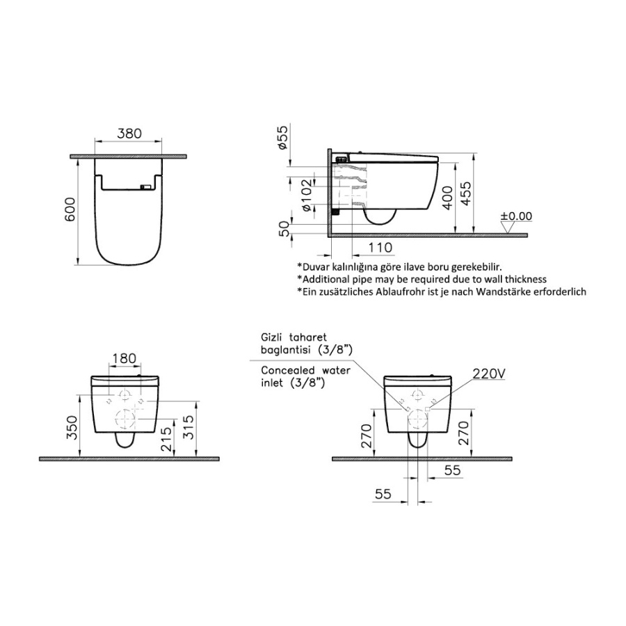 Унитаз подвесной VitrA V-care Basic 5674B003-6193(6103) интеллектуальный