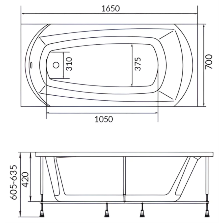 Акриловая ванна 1MarKa Elegance 165х70 белая, без каркаса