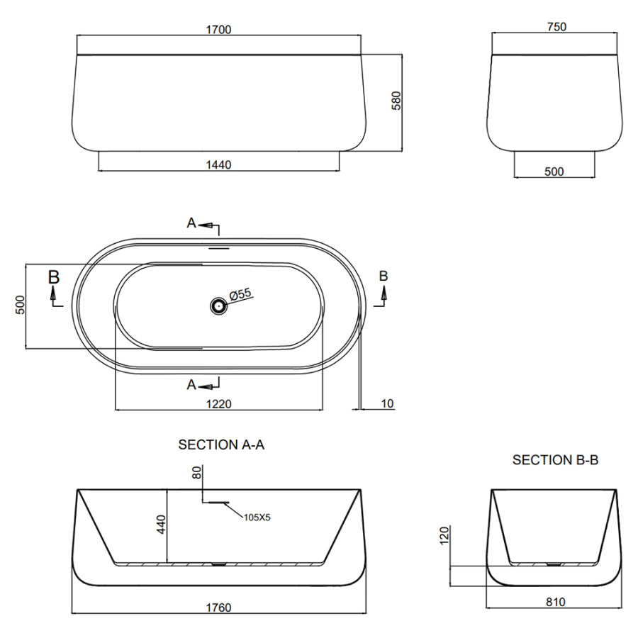 Акриловая ванна AVS Аврора 175x80 оливковая светлая с донным клапаном