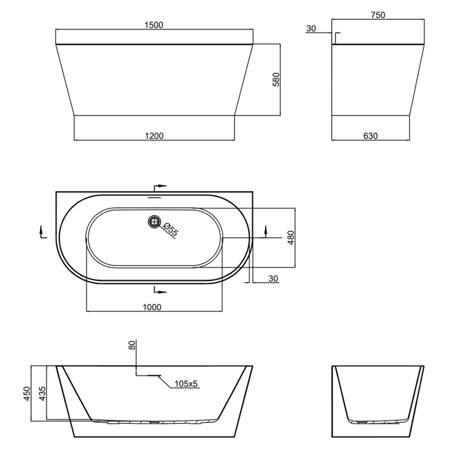 Акриловая ванна AVS Фрея 150x75 белая с донным клапаном