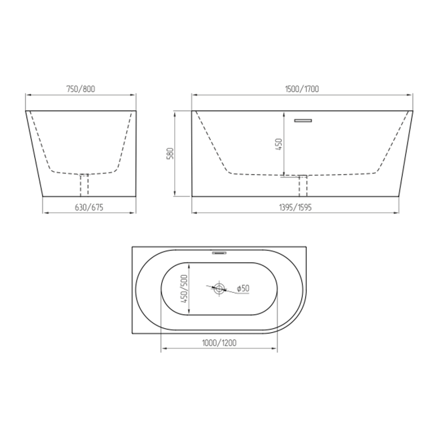 Акриловая ванна AVS Галатея 150x75 L белая с донным клапаном