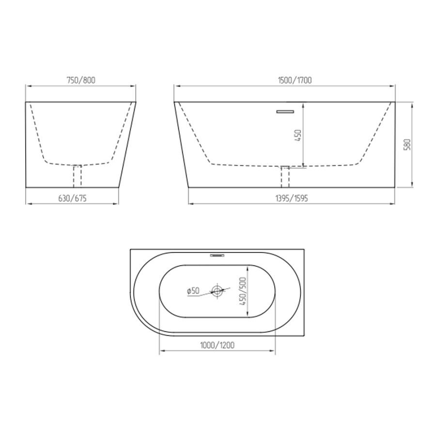 Акриловая ванна AVS Галатея 170x80 R белая с донным клапаном