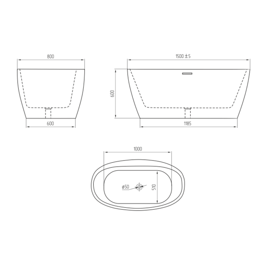 Акриловая ванна AVS Метида 150х80 белая с донным клапаном