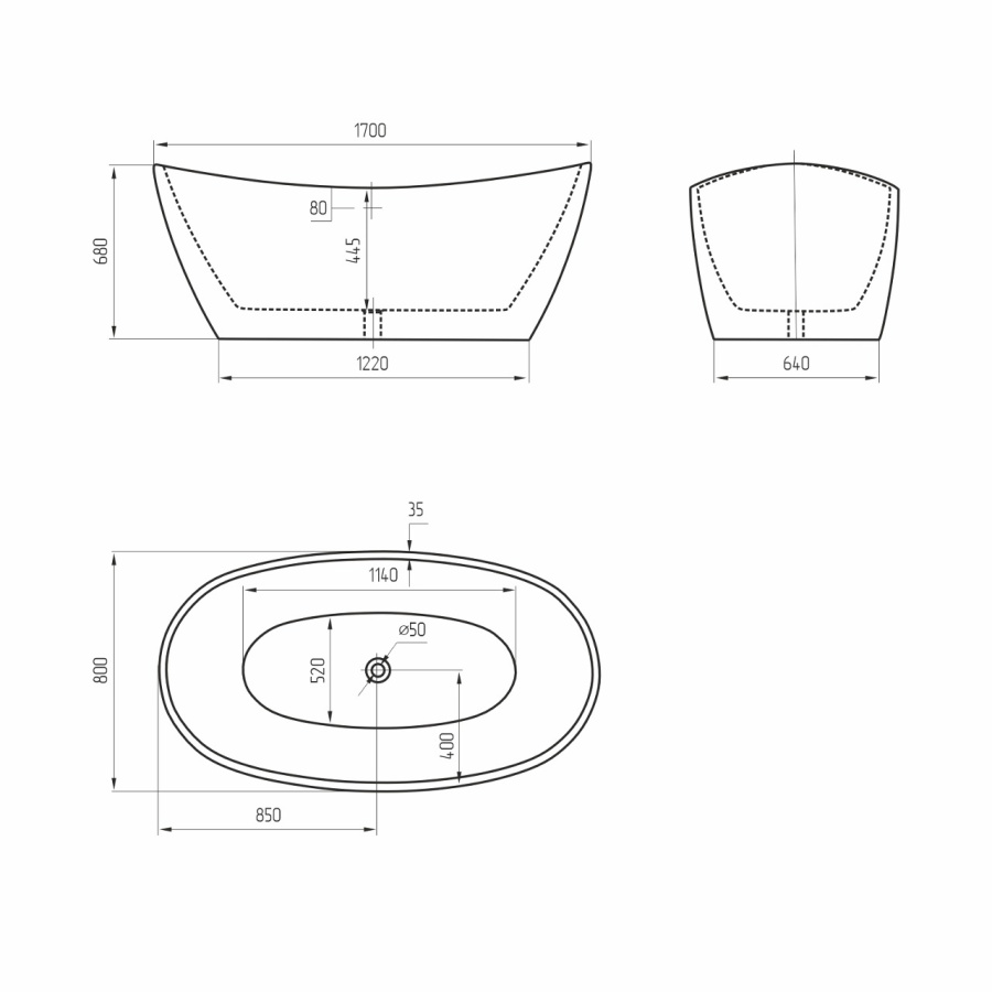 Акриловая ванна AVS Наоми 170x80 белая с донным клапаном