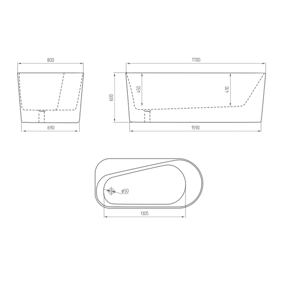 Акриловая ванна AVS Персея 170х80 белая с донным клапаном