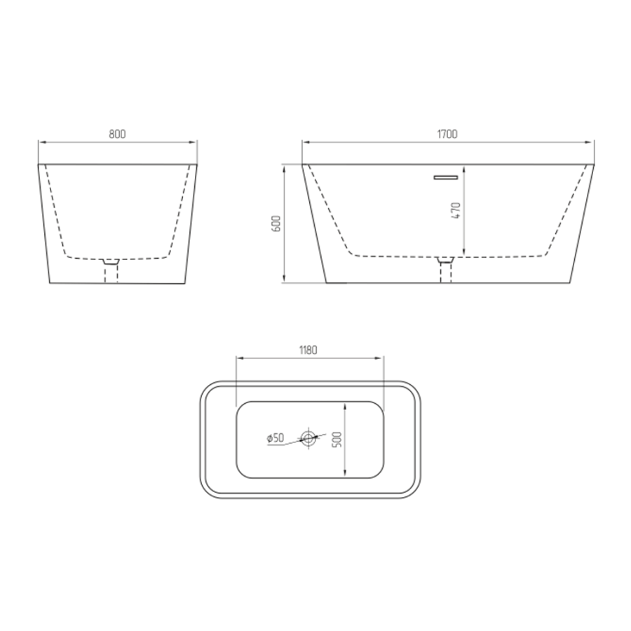 Акриловая ванна AVS Шарм 170x80 белая c донным клапаном