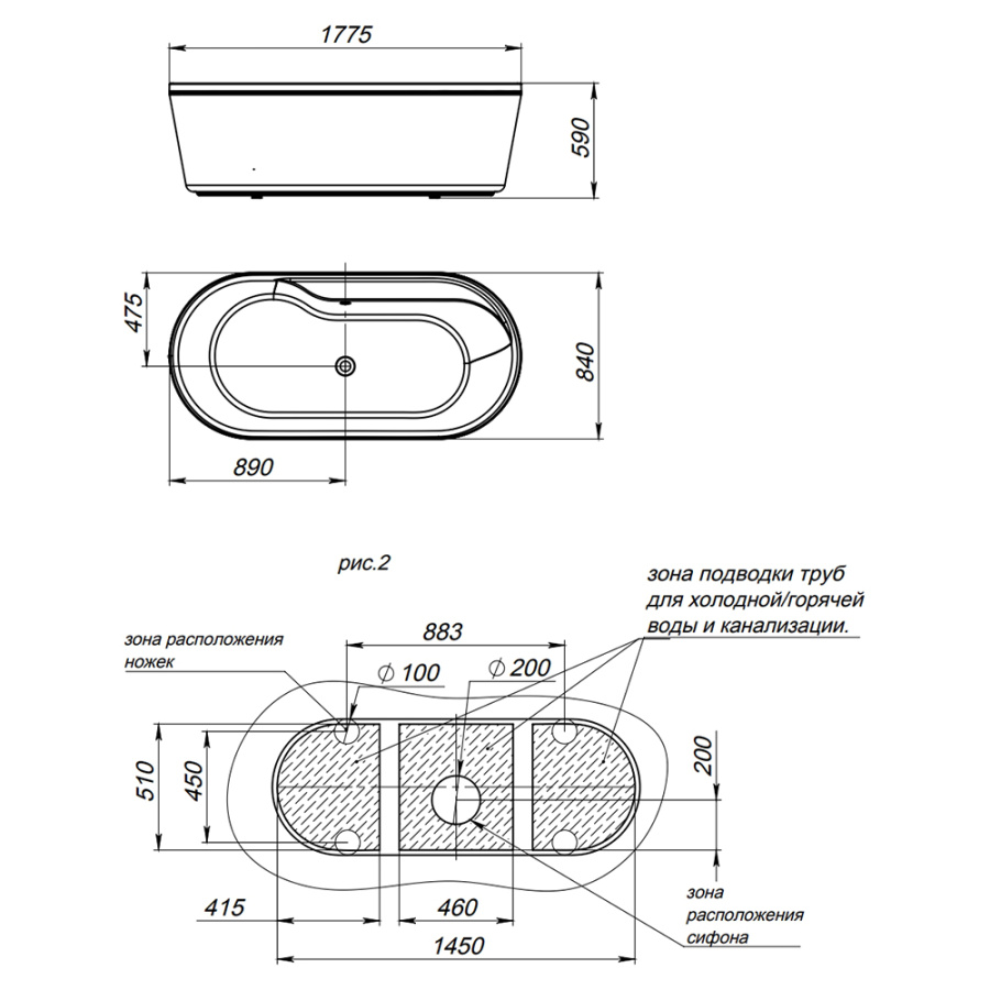 Акриловая ванна BelBagno BB14-K 180х85 белая с ножками