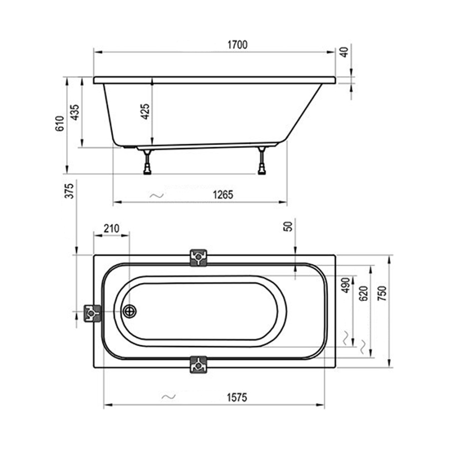 Акриловая ванна Ravak Chrome 170x75 белая с ножками и экранами