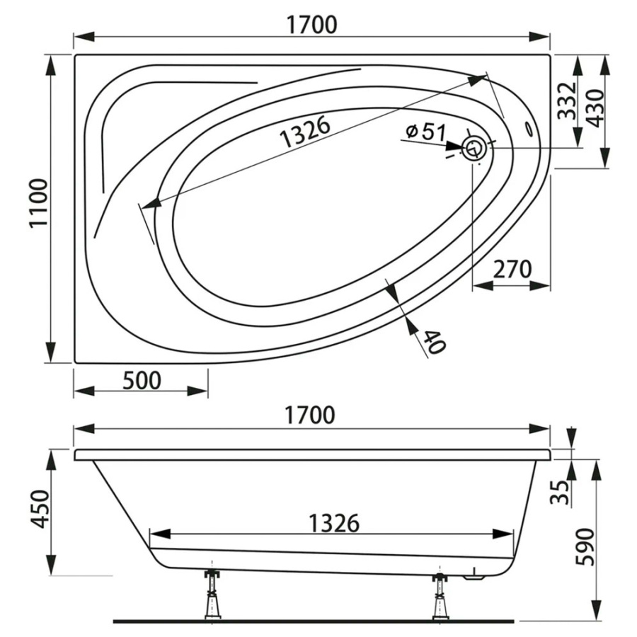 Акриловая ванна Vagnerplast Hapi 170x110 L белая, с каркасом и экраном