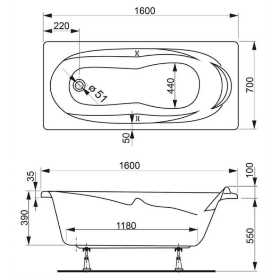 Акриловая ванна Vagnerplast Kleopatra 160x70 белая, без каркаса