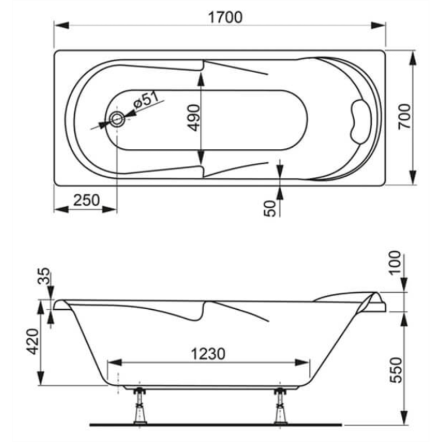 Акриловая ванна Vagnerplast Minerva 170x70 белая, без каркаса