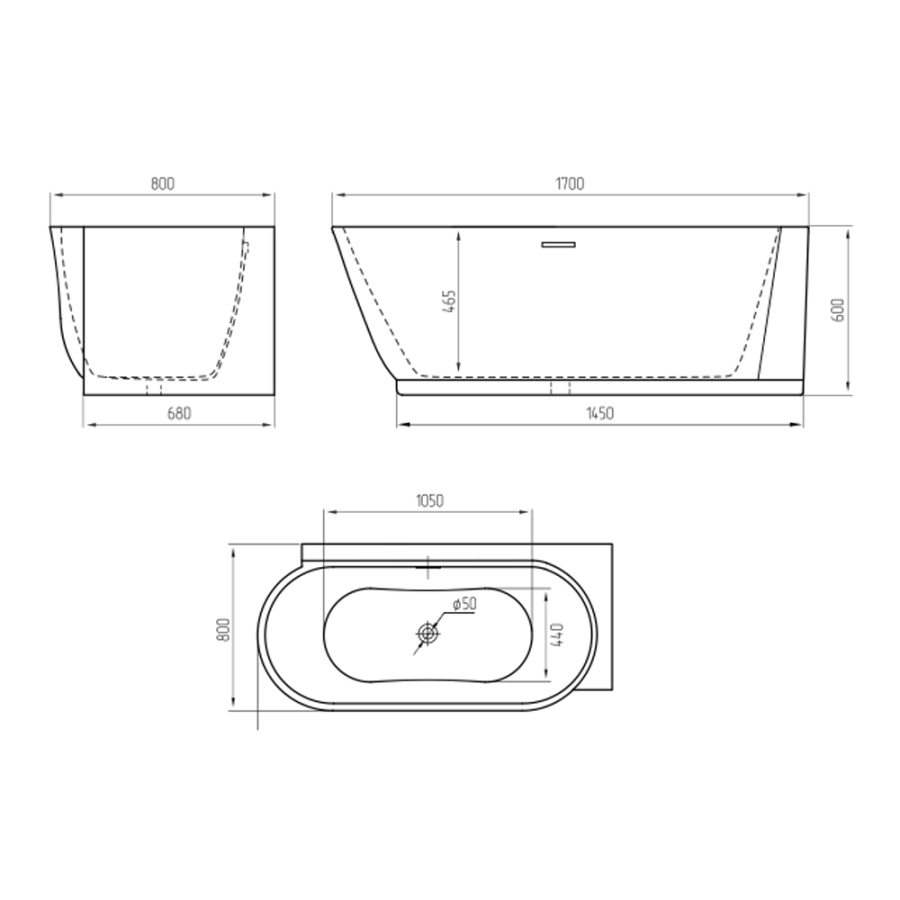 Акриловая ванна Wasser Leben Muritz 170х80 R белая с донным клапаном