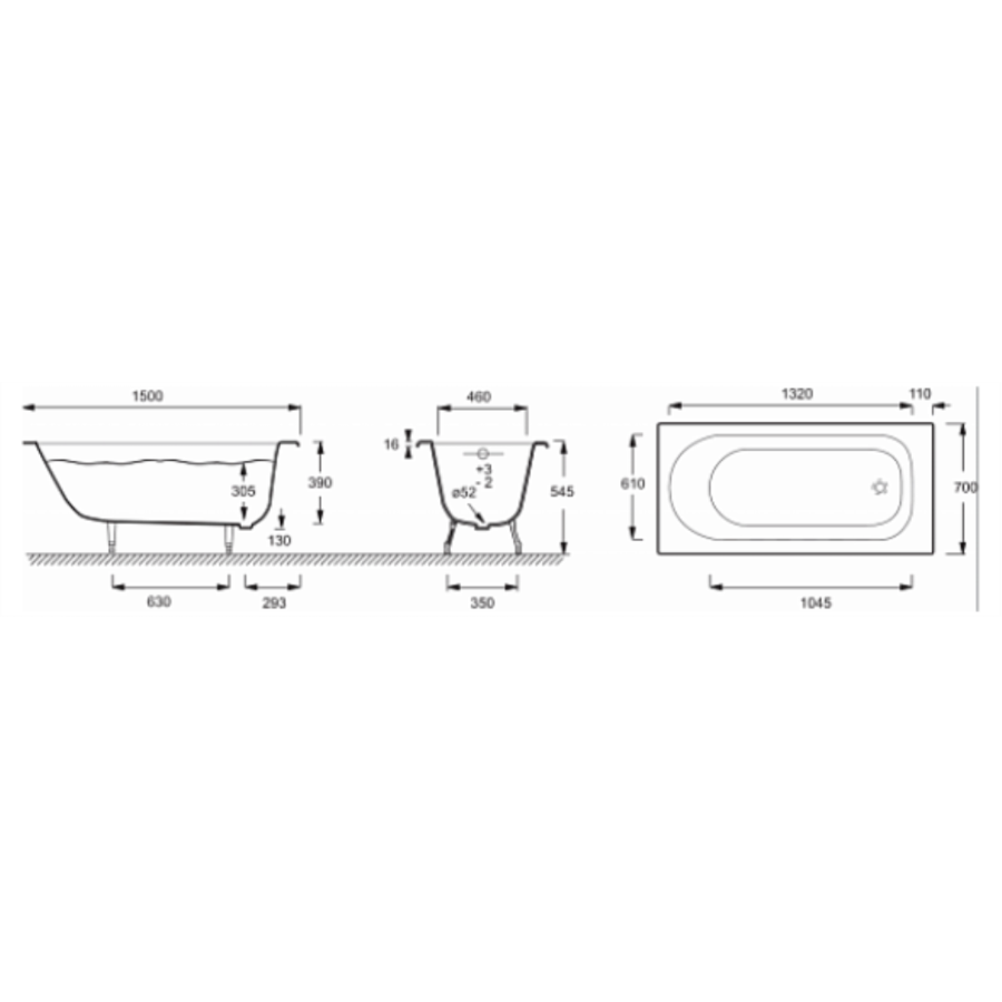 Чугунная ванна Jacob Delafon Soissons 150х70 белая, без ножек