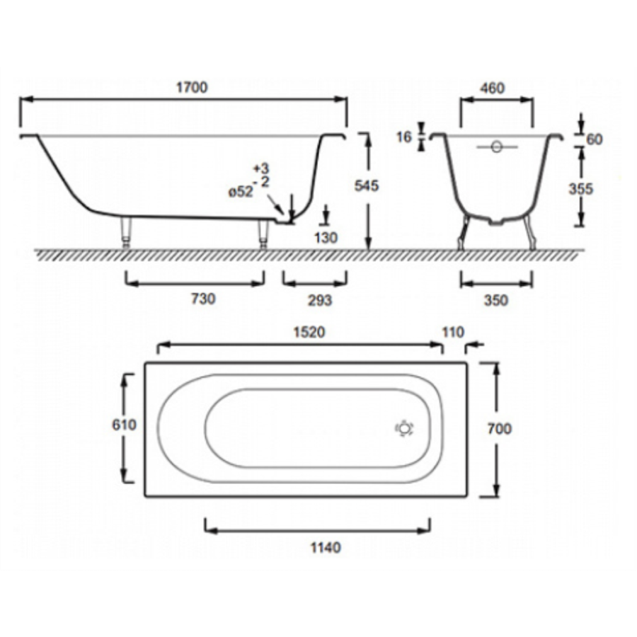 Чугунная ванна Jacob Delafon Soissons 170х70 белая, без ножек