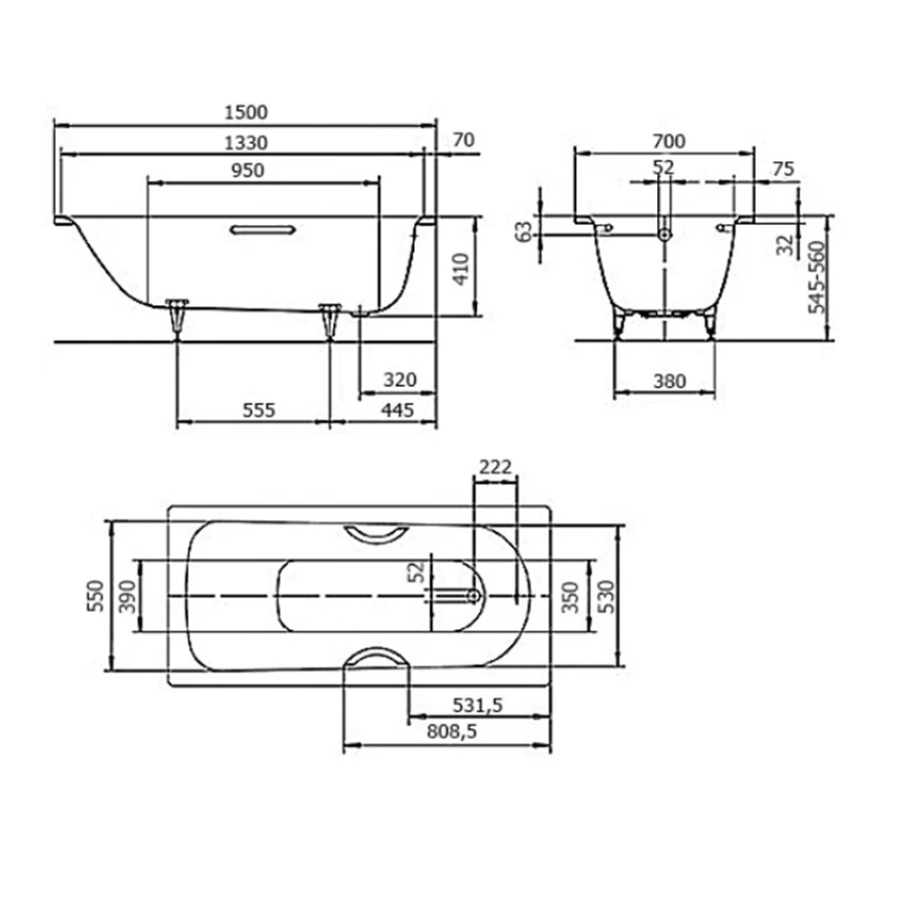KALDEWEI (Saniform Plus Mod 361-1) Ванна 1500x700x410 мм, с E-plus