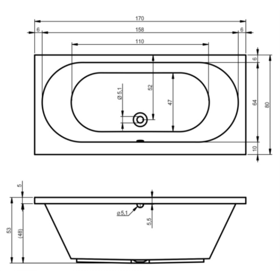 Акриловая ванна RIHO Carolina 170х80 белая с ножками
