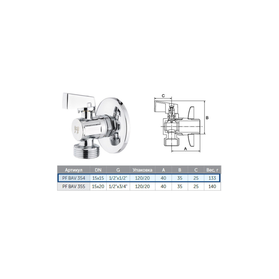 Кран угловой шаровый ProFactor PF bav354 1/2