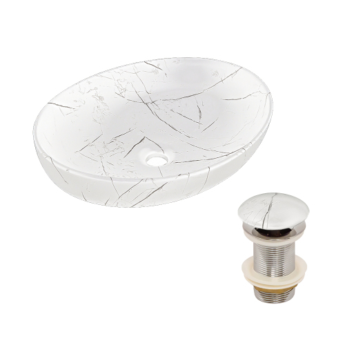 Раковина AVS Саманта 51x40 белый мрамор матовая с донным клапаном