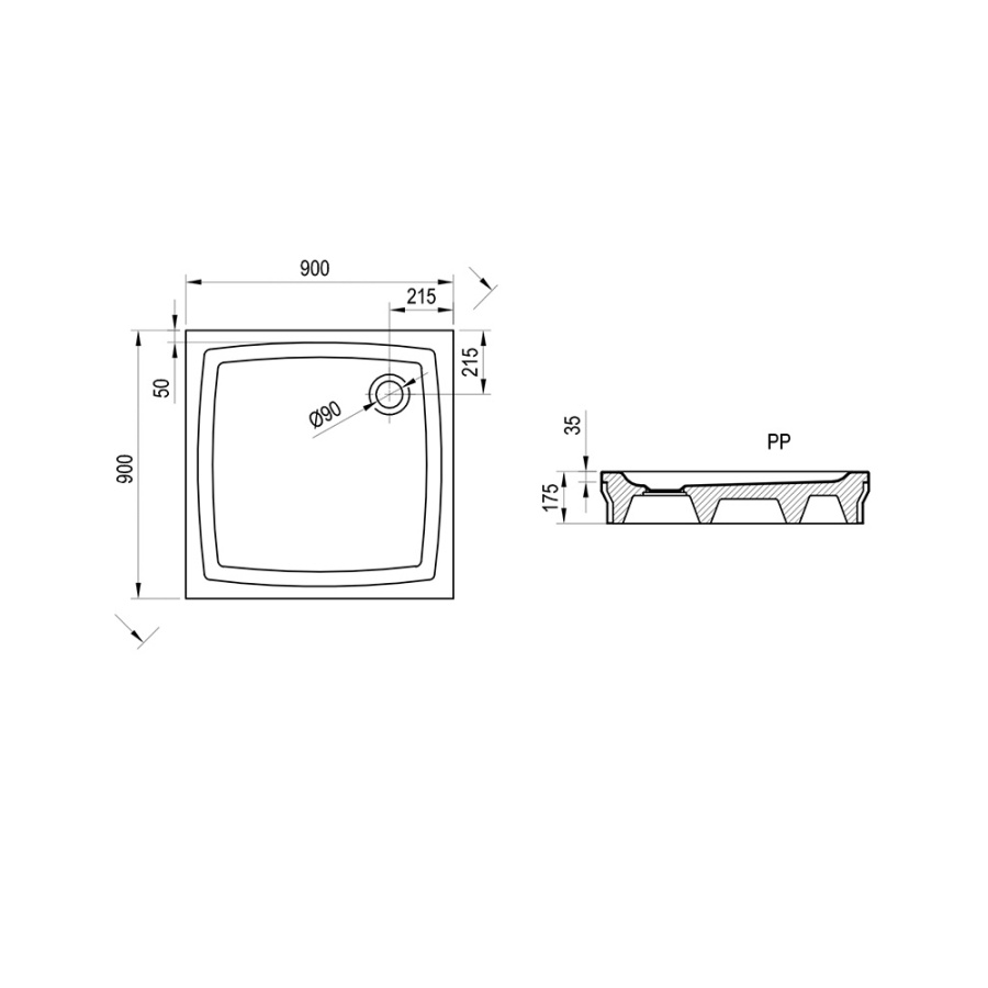 Поддон для душа Ravak Perseus PP A027701510 90x90 белый