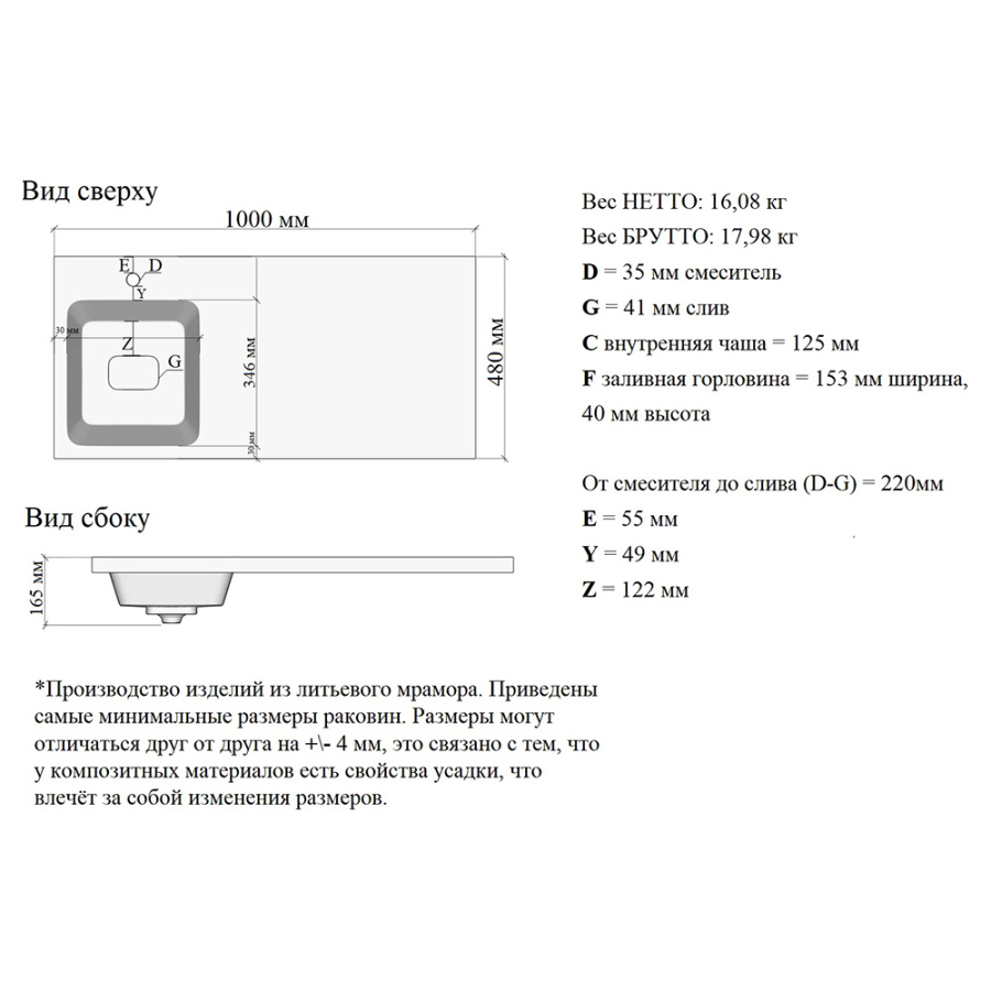 Раковина Madera Kamilla 4627173210577 100x48 левая