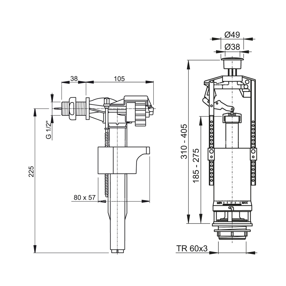 SA2000 1/2 CHROM Арматура для унитаза гориз a15 стоп/кнопка ALCAPLAST