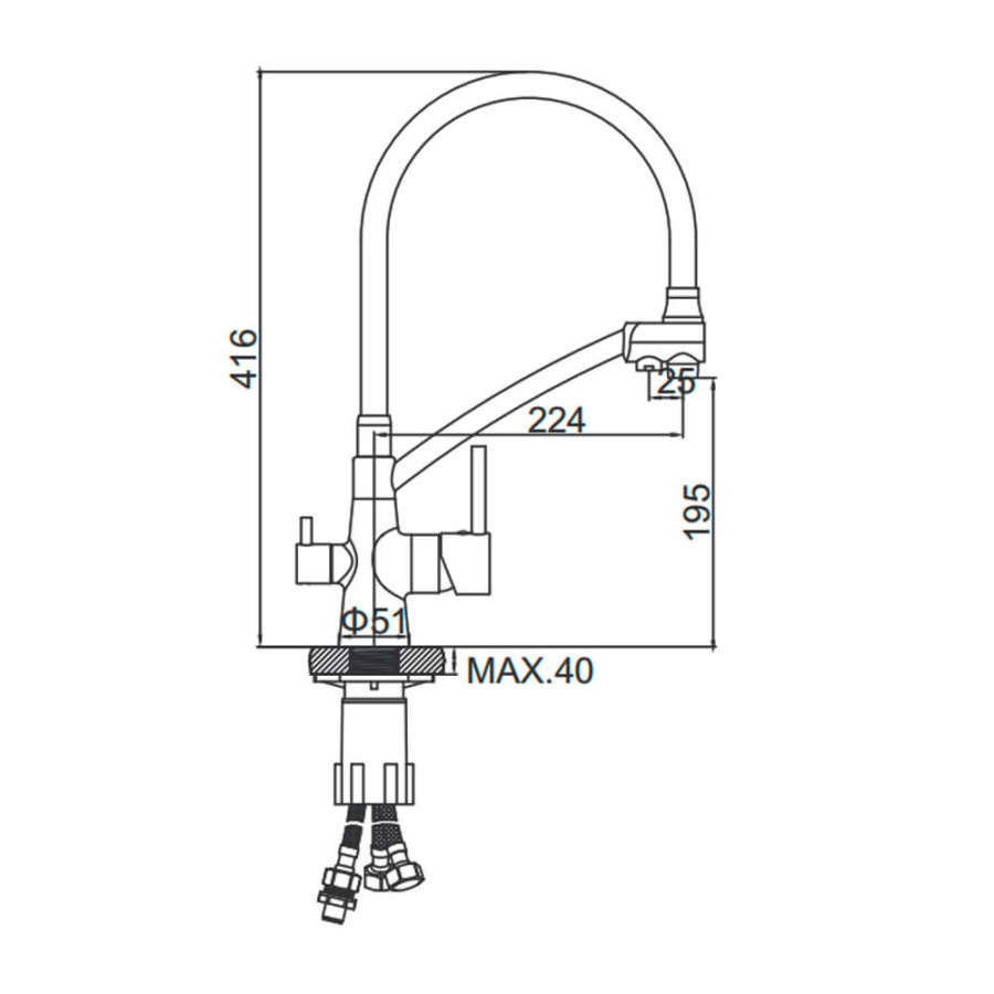 смеситель; комплект креплений; комплект гибкой подводки; инструкция.