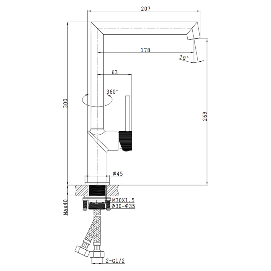 Смеситель для кухни AVS Pulse оружейная сталь