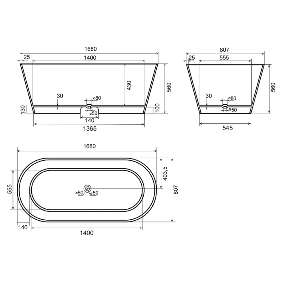 Ванна из искусственного камня Aqua de Marco Corsica 170x80 белая