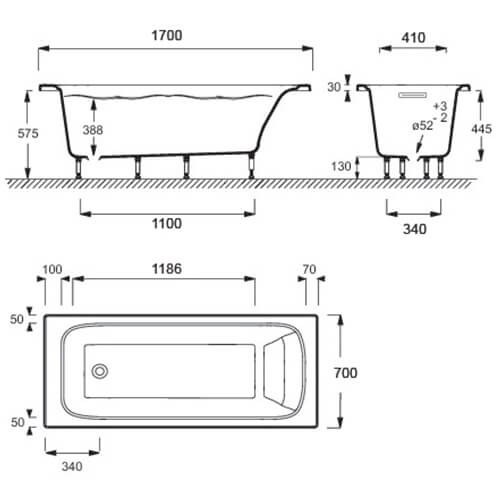 Ванна из искусственного камня Jacob Delafon Elite 170x70 белая, с ножками