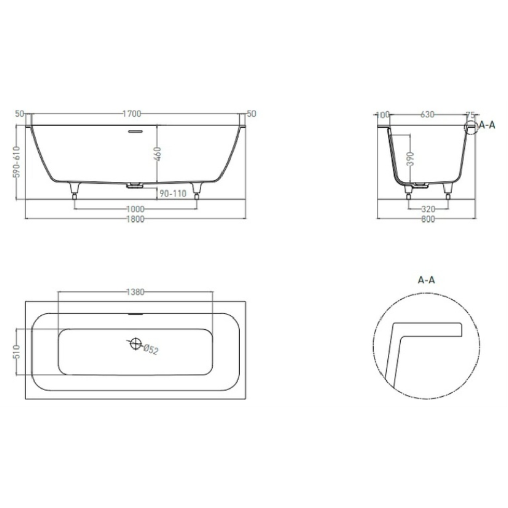 Ванна из искусственного камня Salini ORLANDO Axis Kit S-Stone 180x80 белая, с ножками и донным клапаном