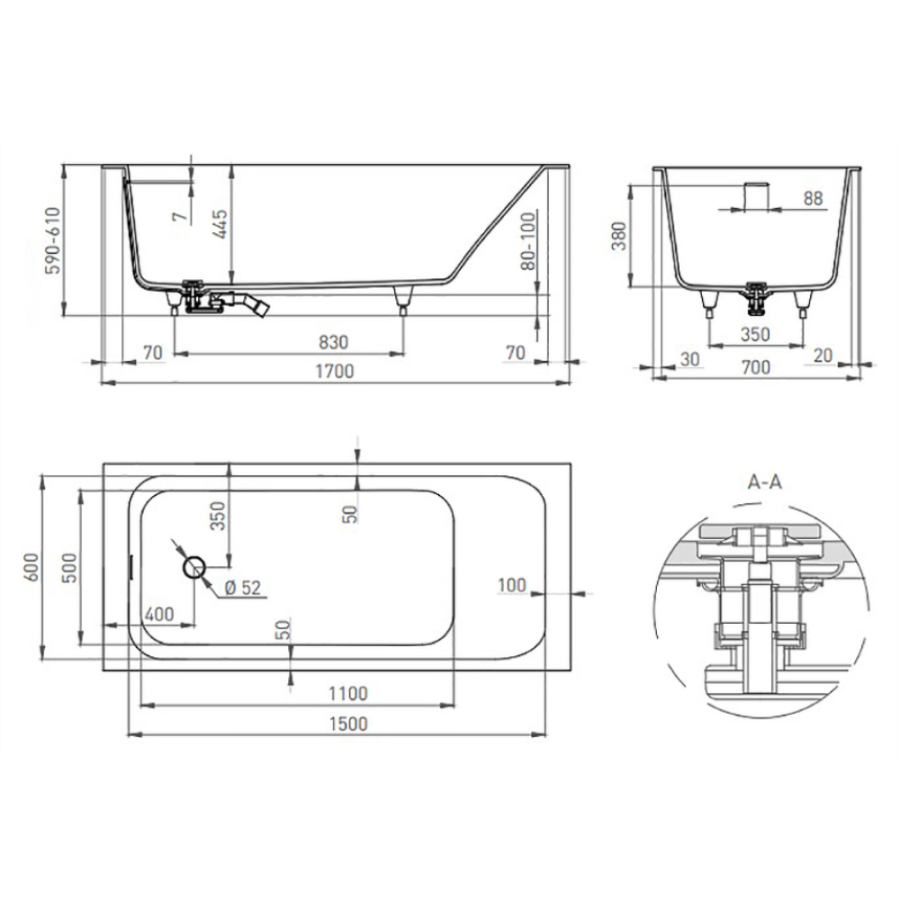 Ванна из искусственного камня Salini Orlando Kit S-Sence 160х70 белая, с ножками и донным клапаном