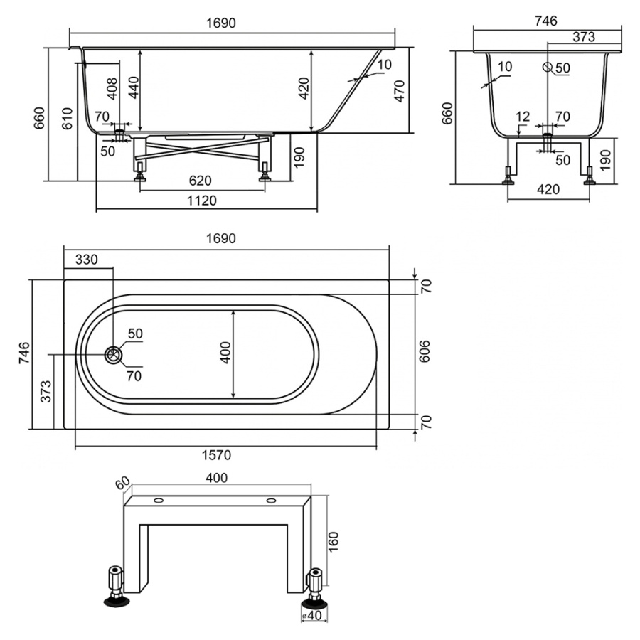 Ванна из искусственного камня Aqua de Marco Верона 170x75 белая матовая, с ножками