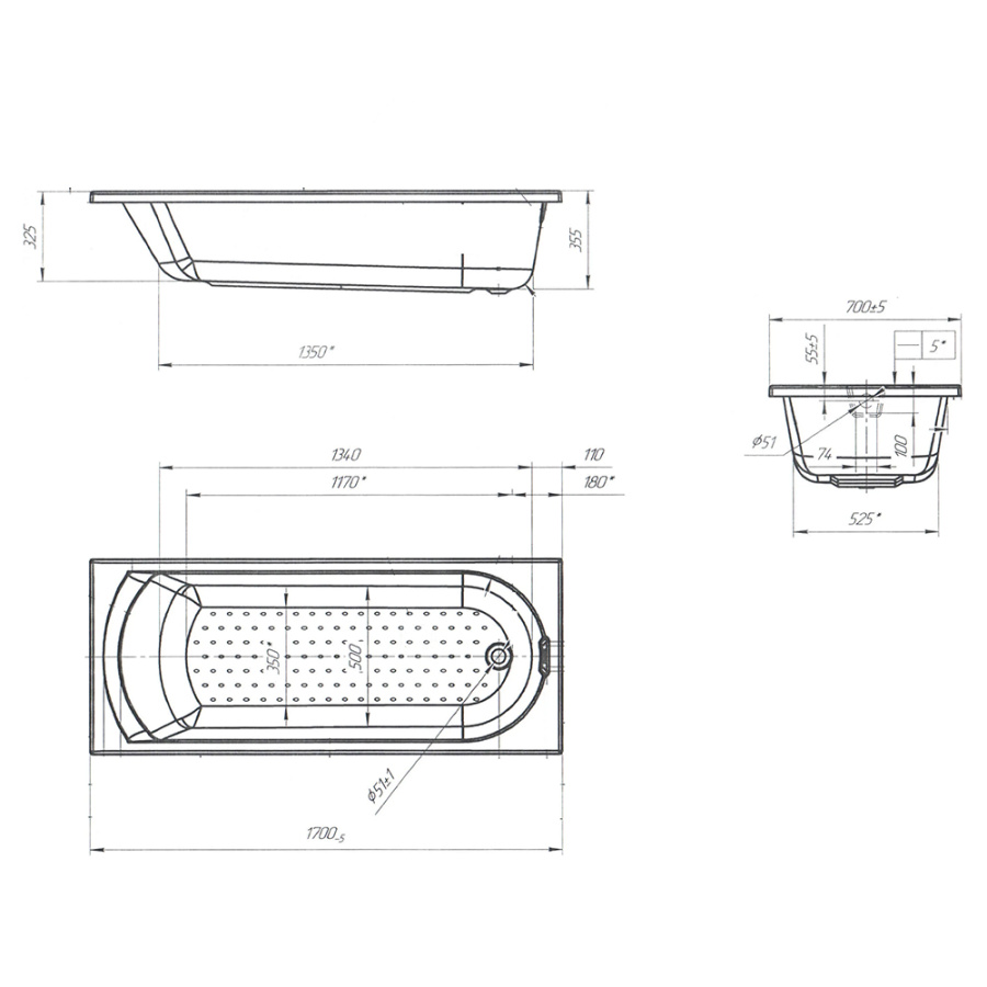 Акриловая ванна 1Marka Poseidon Lily 170x70 белая с ножками