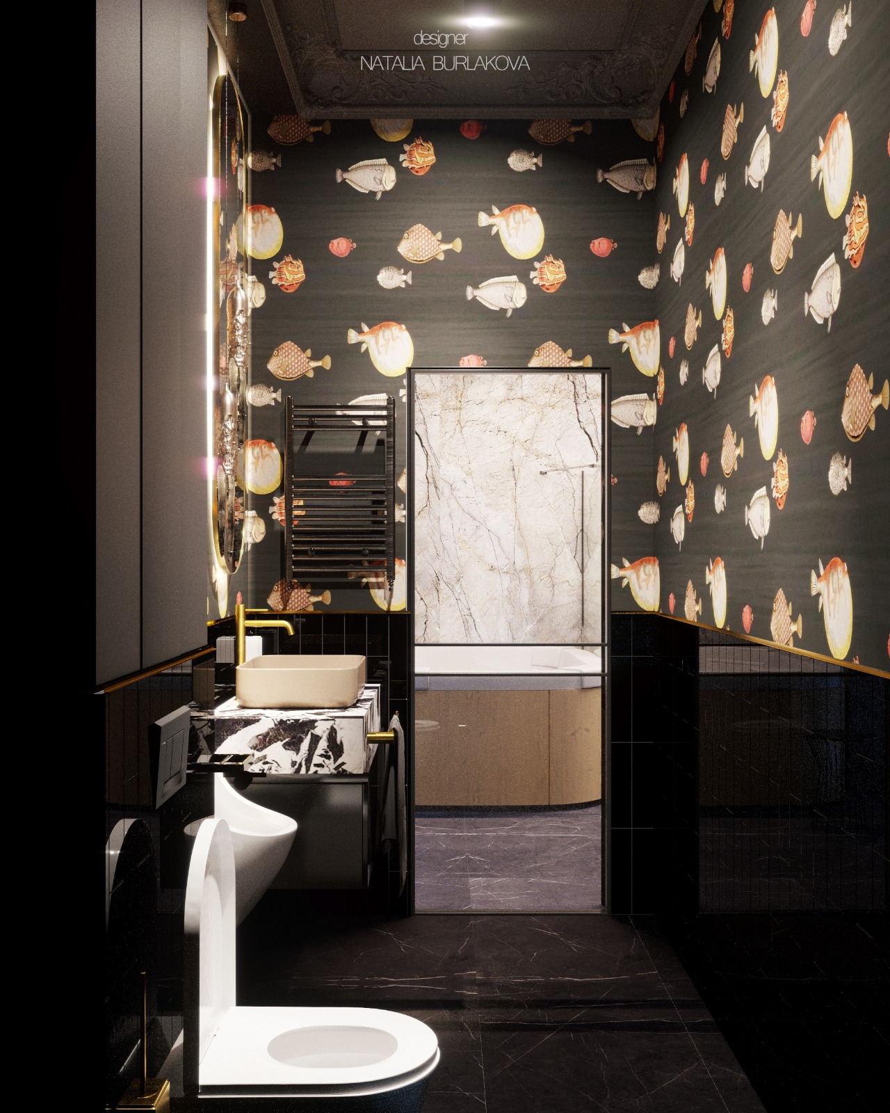 Хозяйка дома харизматиная личность, сан.узел получился под стать - такой же яркий и смелый. Интерьер - это индивидуальная история, важно, чтобы он отражал и продолжал настроение его обитателей.