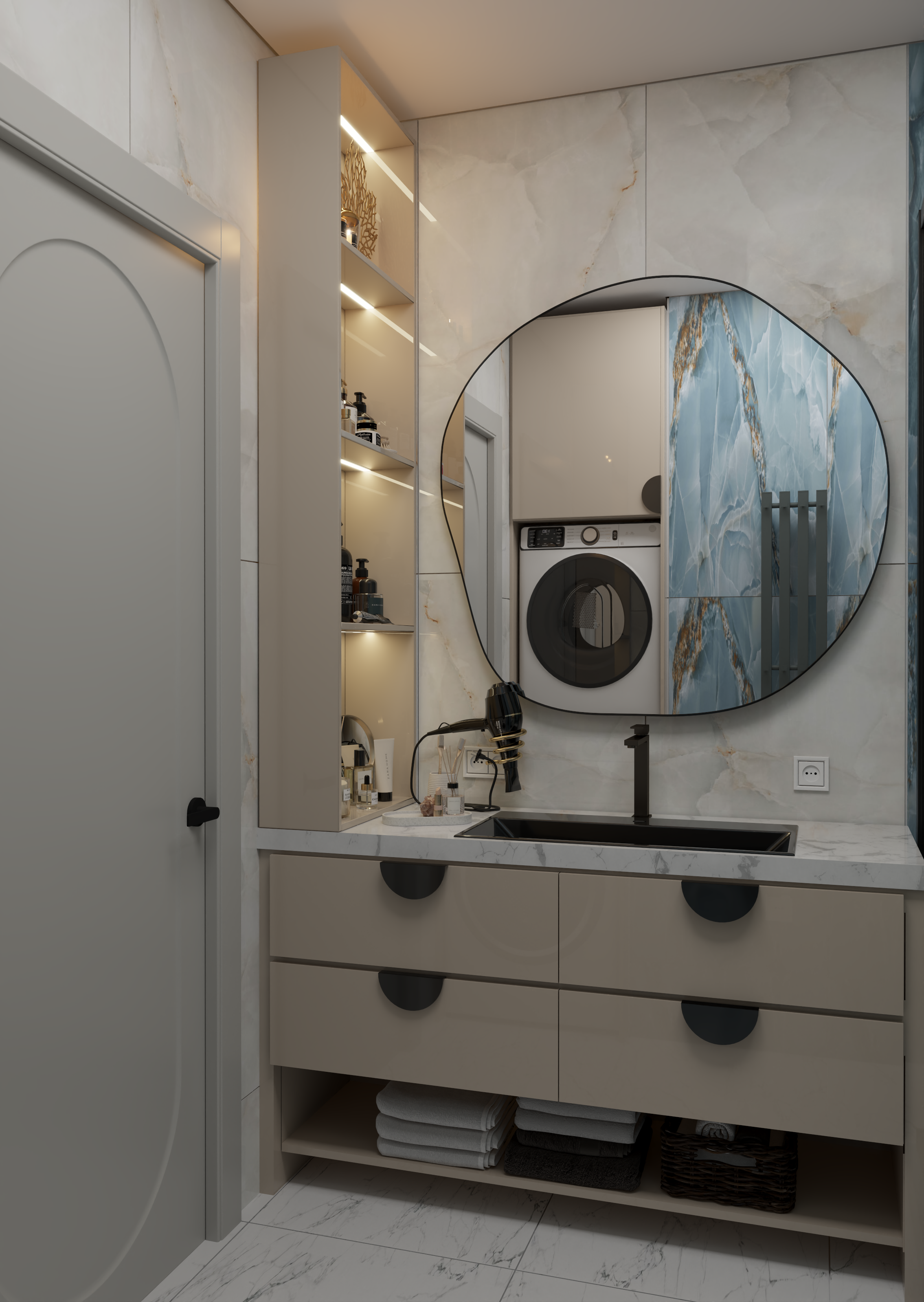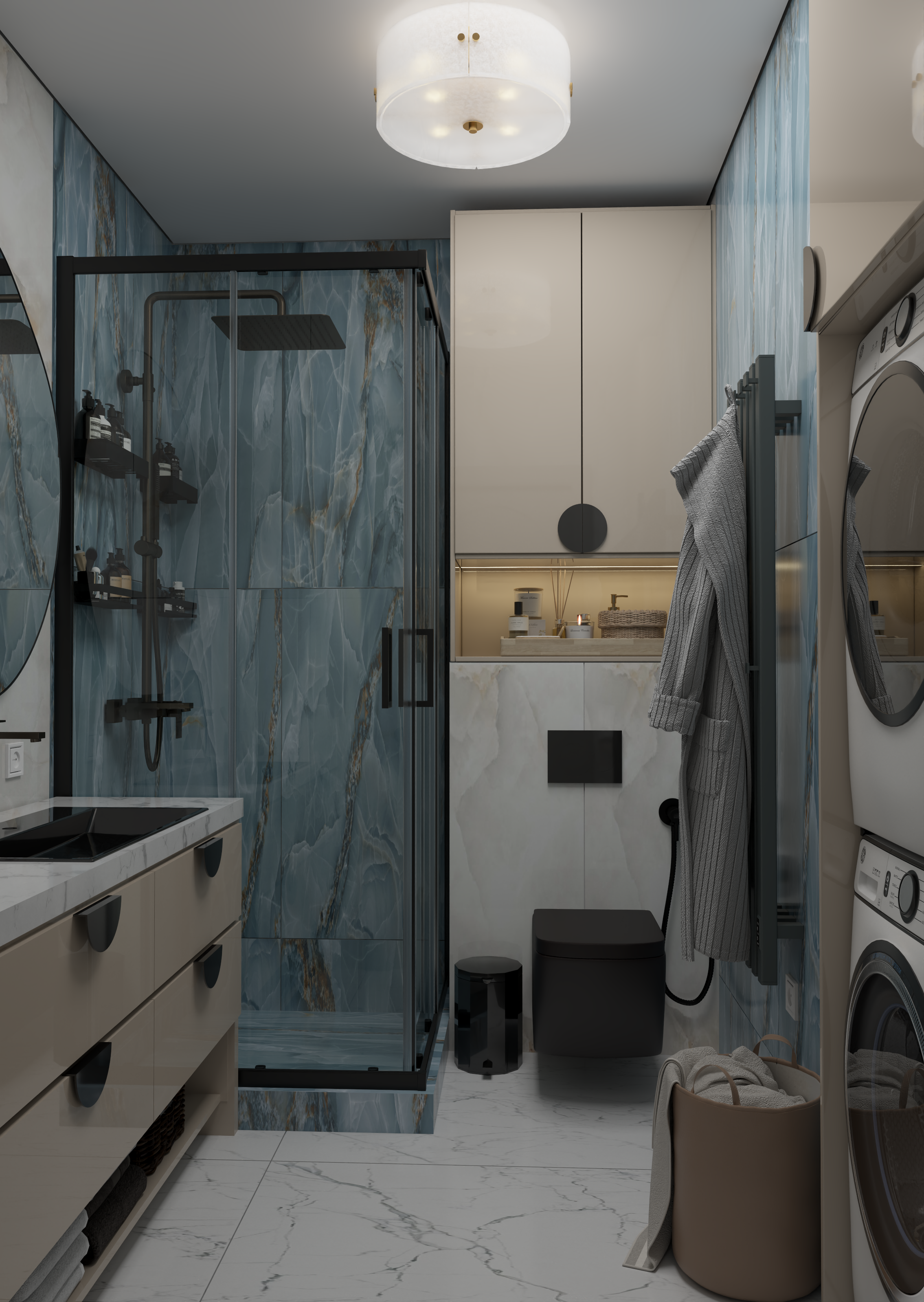 Комплектовать объекты мне помогают мои партнеры. Компания Аквамир, является одним из крупных и надежных поставщиков, поэтому мои объекты я комплектую с ними. Сначала подбираю все в салоне, затем составляем таблицу по комплектации, и готовим визуал. Так и работаем!