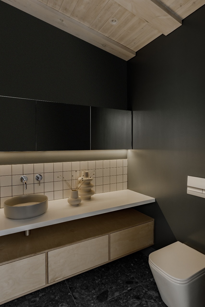 Досталась нам в полуразрушенном виде. Заказчик приобрел этот объект не для постоянного проживания, чтобы останавливаться на выходных, для гостей друзей и родственников. В проекте он хотел увидеть немного французской классики, немного пражского стиля, так как долгое время жил и учился в Праге. Также хотел добавить современного и скандинавского комфортного для жизни дизайна.