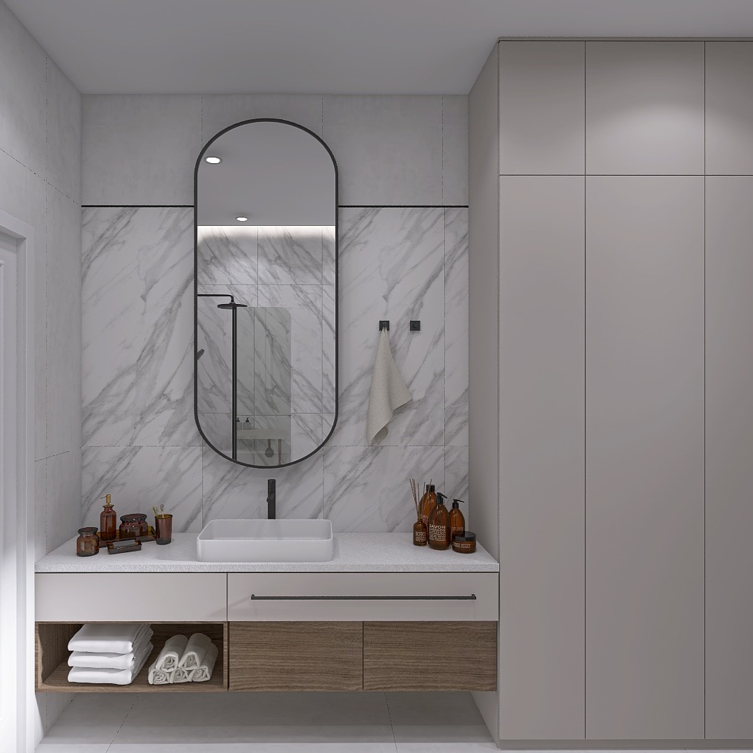 Идея проекта родилась из стремления создать утонченное пространство, где каждая деталь говорит о внимании к качеству и гармонии. Заказчик, ценящий минимализм и долговечность, выразил желание видеть в санузле отражение спокойствия и изыска.