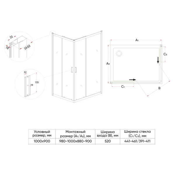 Идеальны для небольших ванных комнат. Двери открываются по направляющим, что экономит место и позволяет пользоваться уголком, не загромождая пространство.
