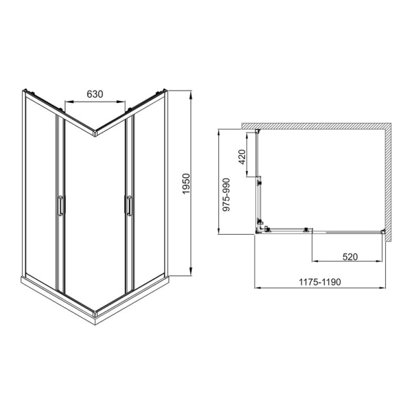 1. Распашные душевые уголки