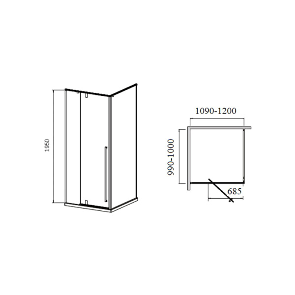 Душ угол 1200*1000*1950 профиль хром прозр стекло CEZARES