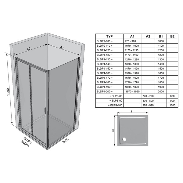 2. Раздвижные душевые уголки