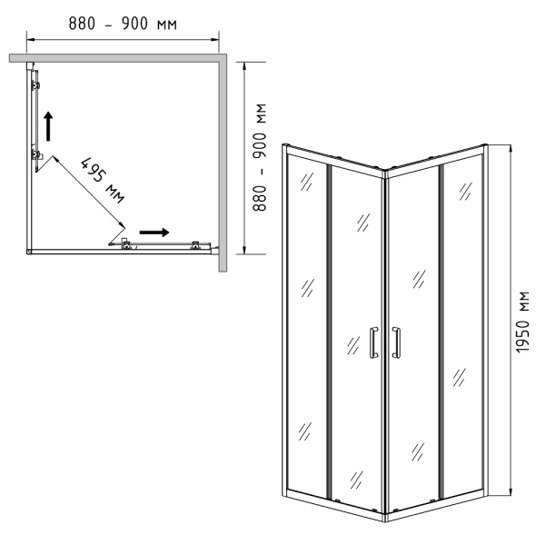 1. Распашные душевые уголки
