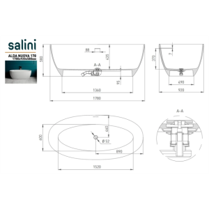 Ванна из искусственного камня Salini Fabia S-Sense 180х80 белая матовая, с ножками и донным клапаном
